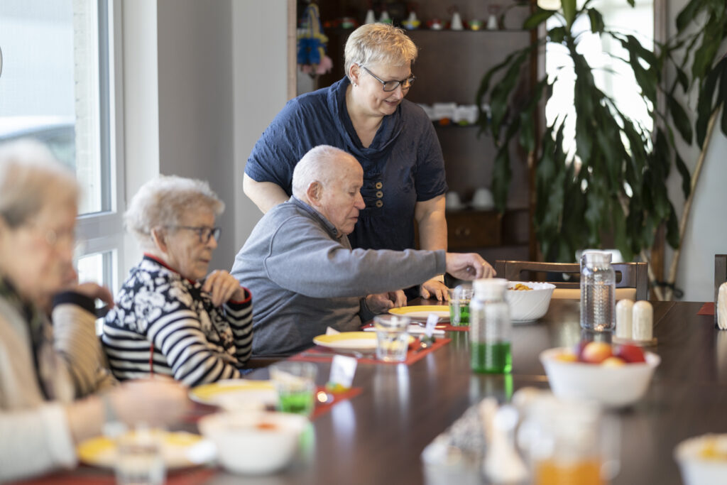 Unsere Gäste bleiben zwischen 8 und 16.30 Uhr bei uns. So entsteht ein Tag mit Struktur, mit Mahlzeiten, Aktivitäten, Gesprächen, Ruhezeiten – und Menschen, die da sind. Mit Tante Enso gibt es eine kleine Einkaufsmöglichkeit, die fußläufig zu erreichen ist.