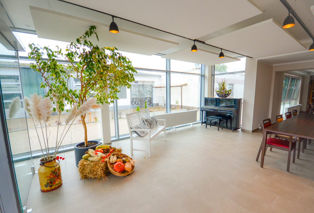 Der Sonnenhof ist vollständig barrierefrei und bewusst offen, hell und überschaubar gestaltet. So entstehen Sicherheit, Orientierung und Geborgenheit.